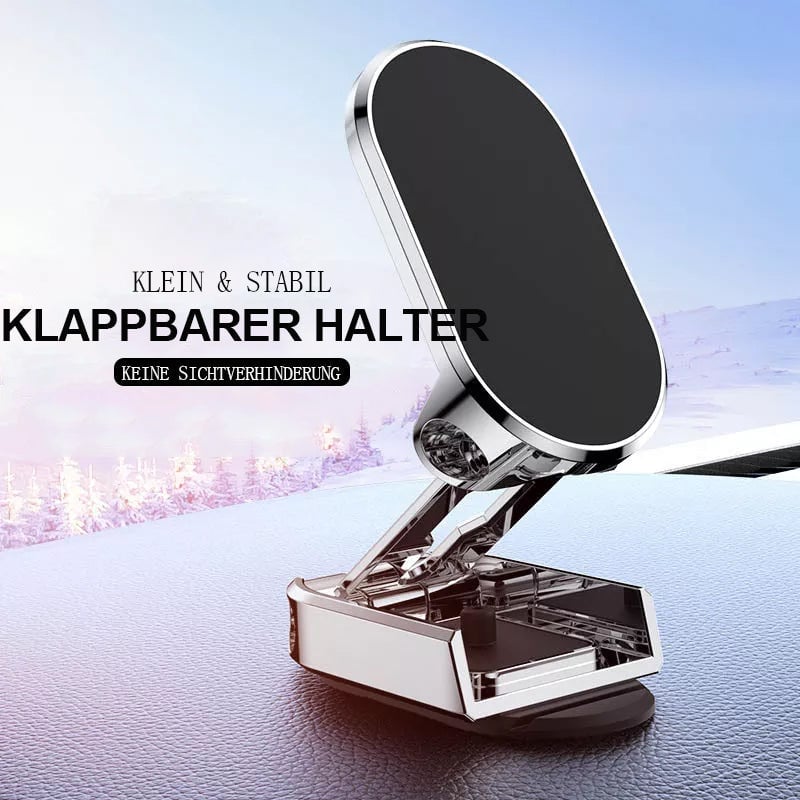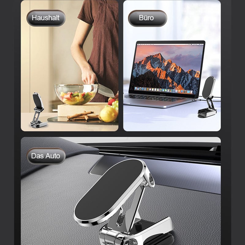 Kleiner und faltbarer magnetischer Auto-Handyhalter, der in Höhe und Winkel nach Belieben angepasst werden kann und einen angenehmen Betrachtungswinkel bietet.