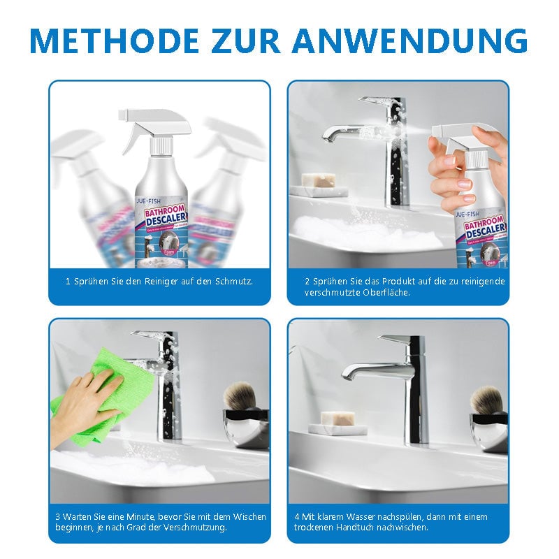 Kraftvolle Dekontamination: Es handelt sich um einen durchdringenden Schaumreiniger, der Schmutz, Flecken, Fett, Seifenreste usw. mühelos auflöst. Erleichtert die Tiefenreinigung und sorgt für einen strahlenden Glanz im Bad.